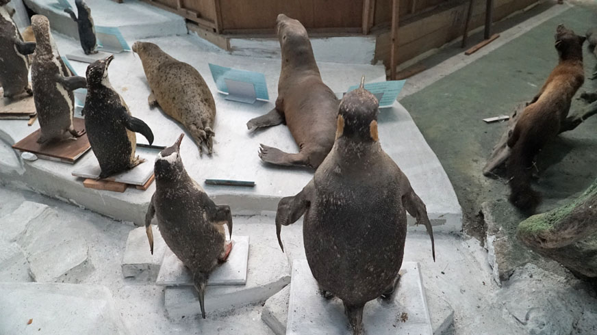 この部屋は二つに分かれています。右が「極地(北極、南極)の動物室」、左が「南米の動物室」です。
